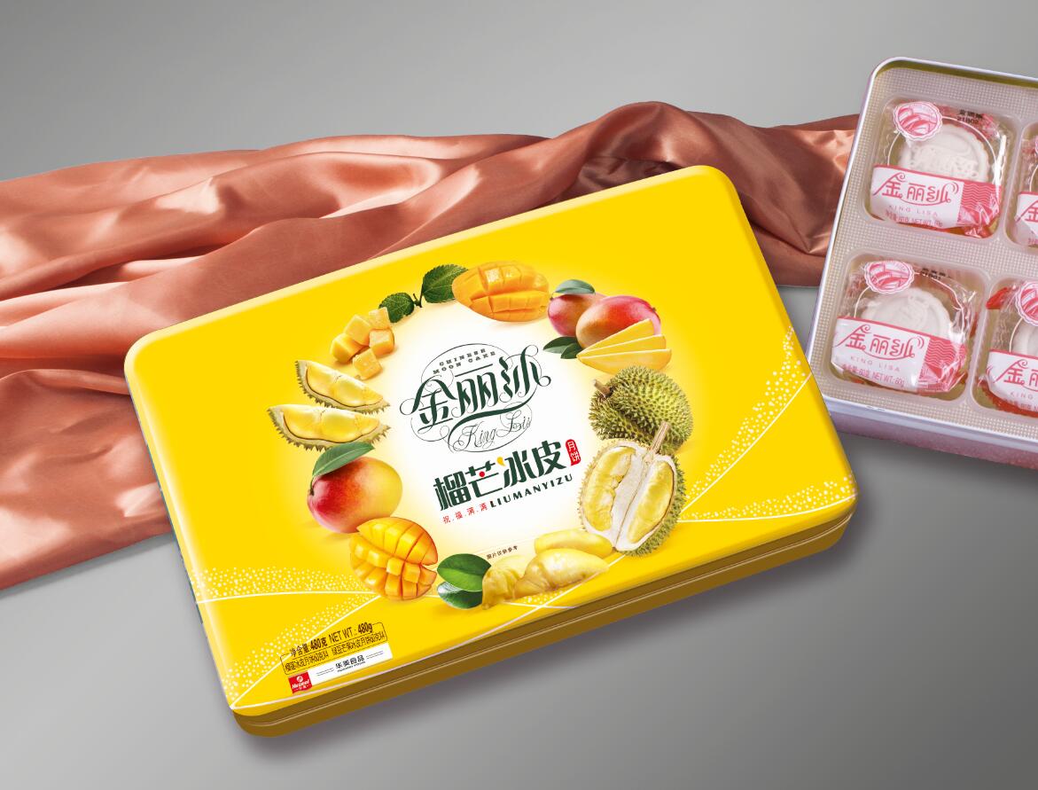 金麗沙榴芒冰皮月餅,內(nèi)配60克榴蓮冰皮月餅和60克綠豆芒果月餅各4個(gè),采用健康植物油低溫制作,清香不油膩。輕輕一口,冰涼表皮里的果王誘人濃香一觸即發(fā)。