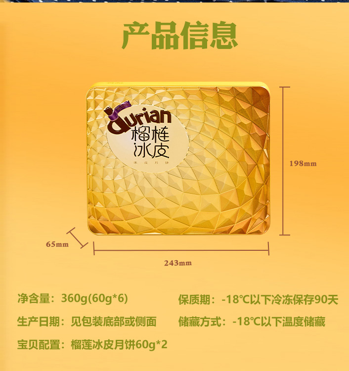 楊枝甘露風(fēng)味冰皮月餅60克*2